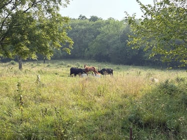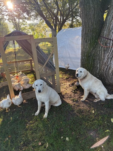 This gallery captures the heart of our farm – chickens in the yard, cows and horses in the pasture, beehives nestled beside the century old red barn, and Maremmas with their puppies standing watch. Each image reflects daily life rooted in care, tradition, and respect for the land. Together, these animals form a working farm where stewardship, balance, and quiet dedication shape everything we do.