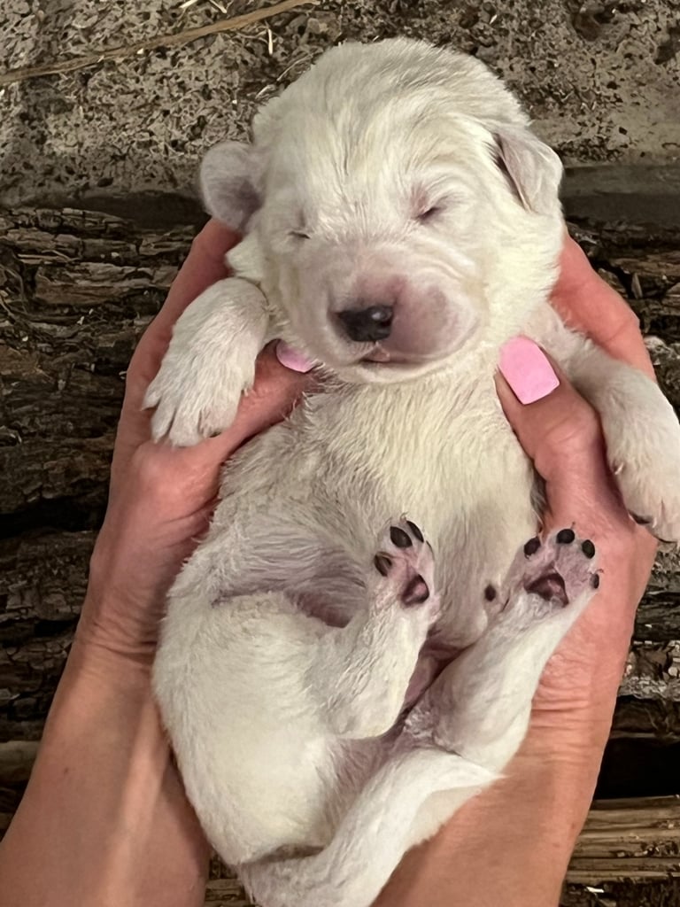 Purebred Heritage: 100% purebred Maremma from dam Old Crowe Dixie (registered) and sire Ruger (purebred unregistered).